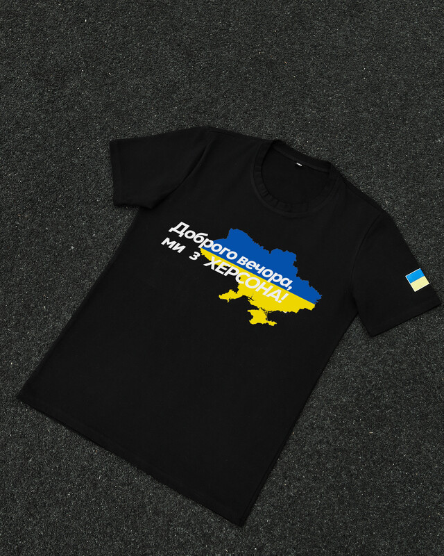 • Патріотична чорна футболка "Доброго вечора ми з ХЕРСОНА"