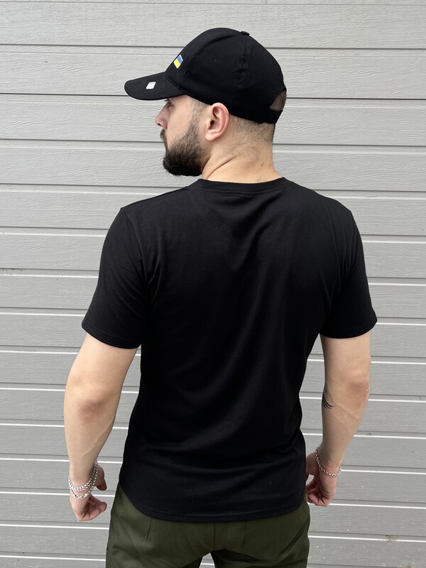 Чорна чоловіча футболка від українського виробника Intruder поєднує в собі стиль та практичність. Виготовлена з високоякісного турецького куліру з додаванням еластану, вона забезпечує комфорт та відмінну посадку завдяки еластичності тканини. Класичний круглий виріз та прямий крій роблять модель універсальною та зручною для повсякденного носіння. Особливу увагу привертає патріотичний принт накаткою, який не вигорає і не втрачає яскравості після прань, що гарантує довгий термін служби виробу. Короткі рукави створюють свободу рухів і чудово підходять для теплої пори року. Футболка — відмінний вибір для тих, хто хоче висловити свою громадянську позицію та підтримати вітчизняного виробника, залишаючись у тренді.