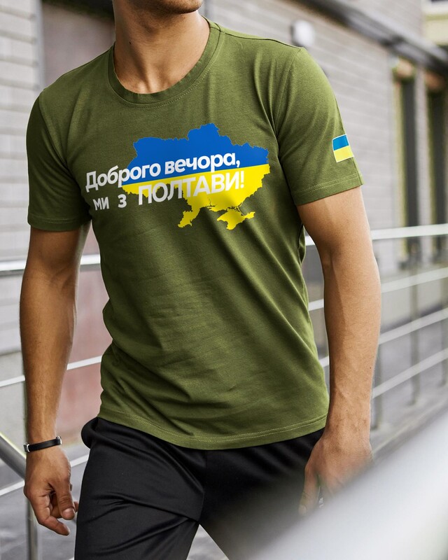 • Патріотична хакі футболка "Доброго вечора ми з ПОЛТАВИ"