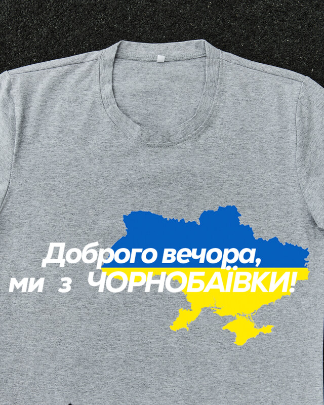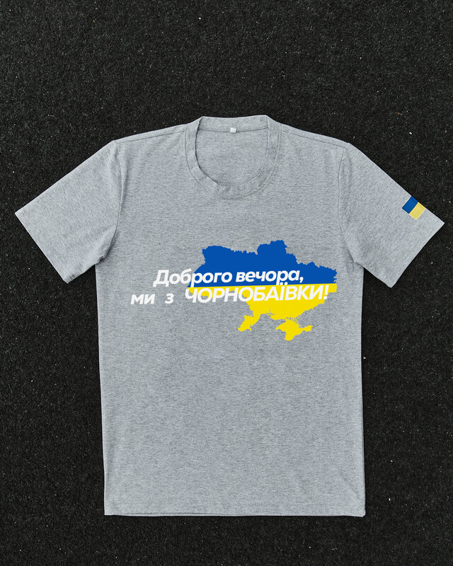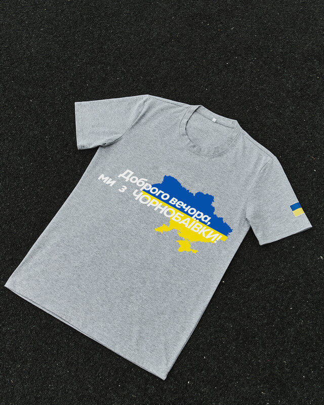 • Патріотична сіра футболка "Доброго вечора ми з ЧОРНОБАЇВКИ"