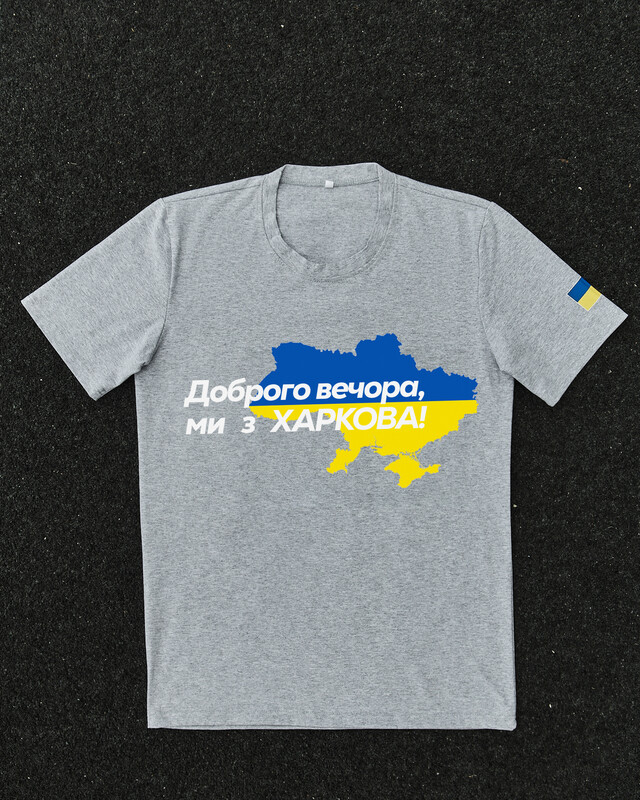 • Патріотична сіра футболка "Доброго вечора ми з ХАРКОВА"