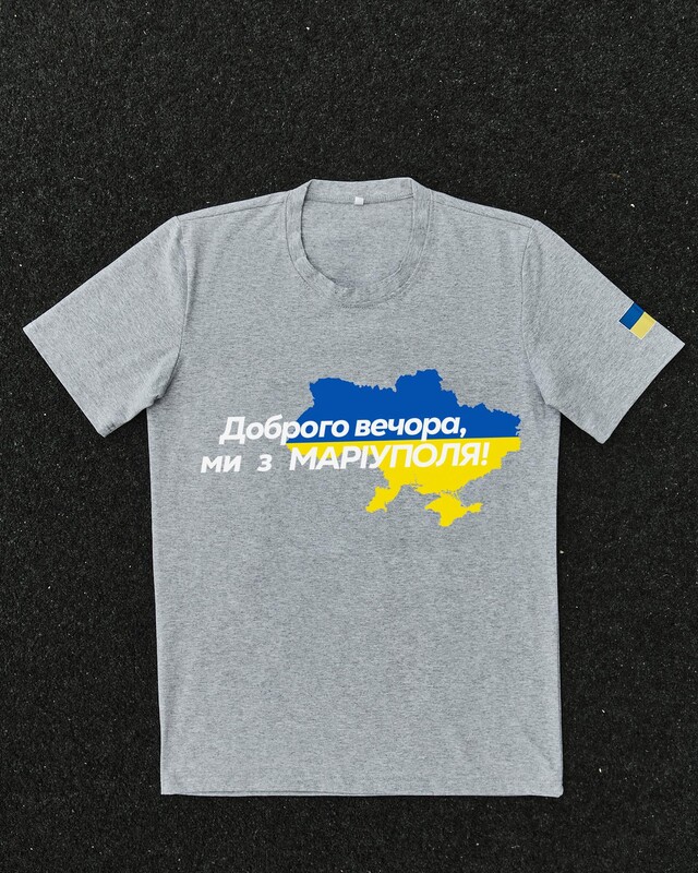 • Патріотична сіра футболка "Доброго вечора ми з МАРІУПОЛЯ"