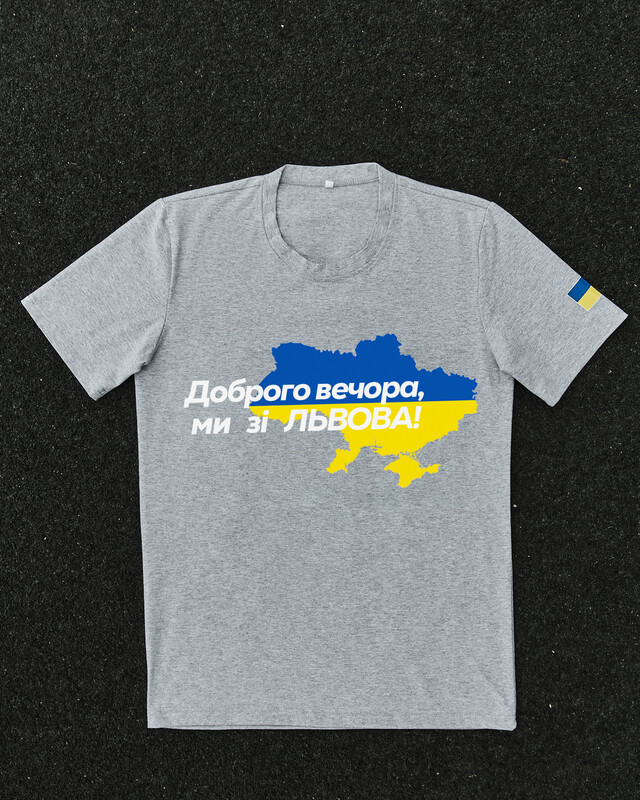• Патріотична сіра футболка "Доброго вечора ми зі ЛЬВОВА"