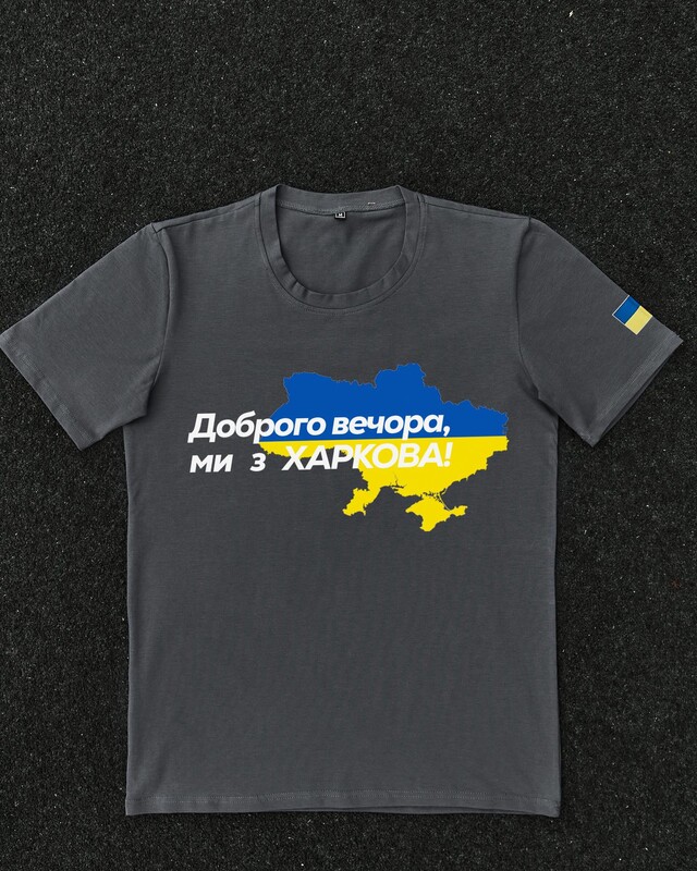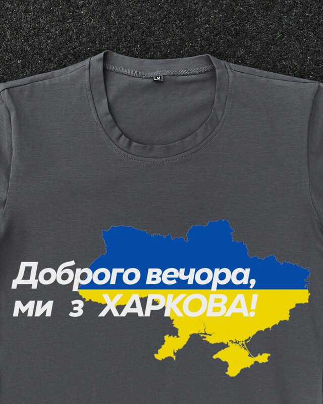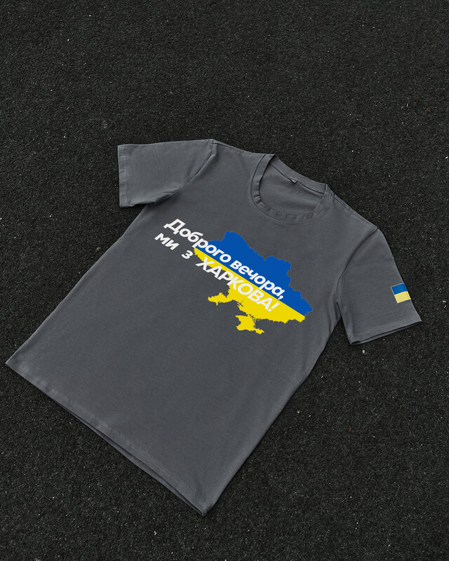 • Патріотична темно-сіра футболка "Доброго вечора ми з ХАРКОВА"