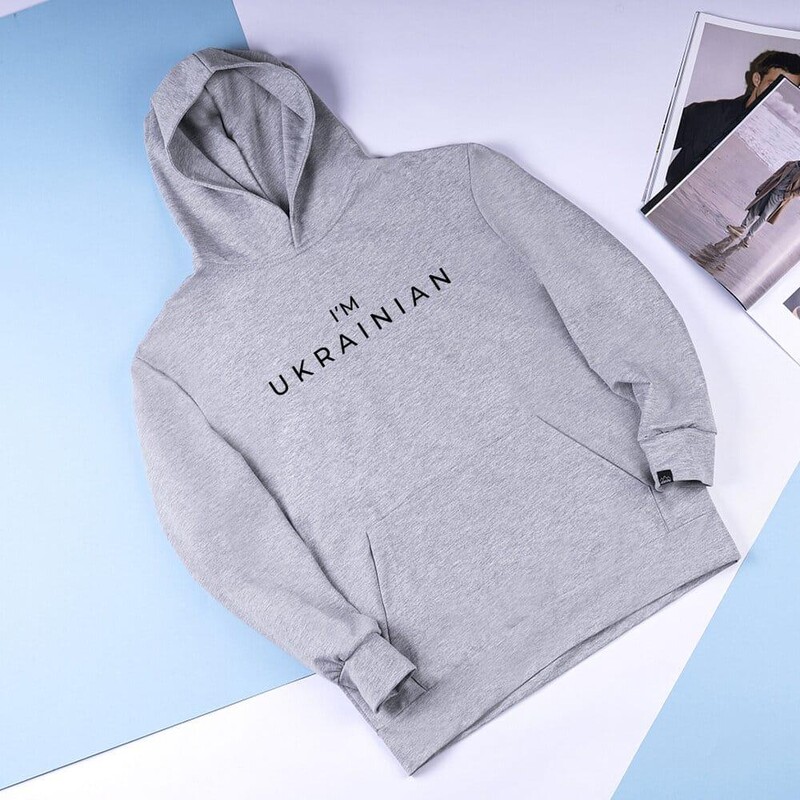 • Патріотичне худі Pobedov 001 сірого кольору I'M UKRAINIAN