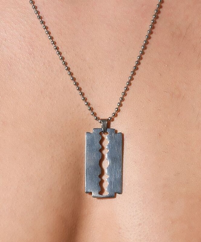 YES! Пропонуємо нову підвіску у вигляді леза бритви Razor Blade Necklace від Andrew Christian. Виготовлена з нержавіючої сталі. Незвичайна форма робить цей аксесуар незамінним доповненням наступного вбрання. Особливо добре виглядає в парі з іншими ланцюжками... Це також чудовий подарунок, тому купіть його і собі, і йому.