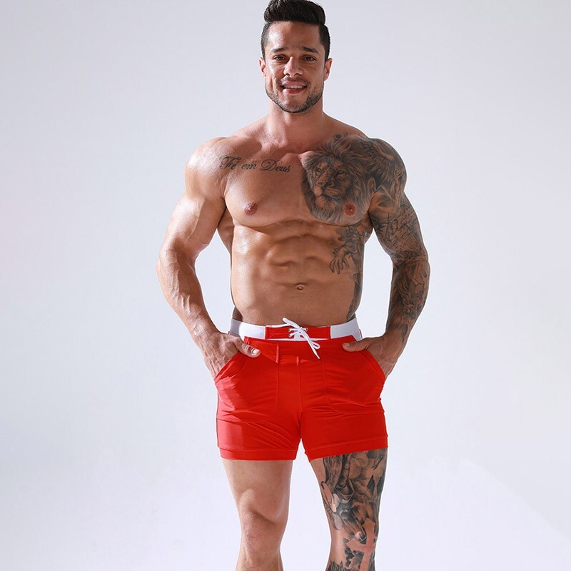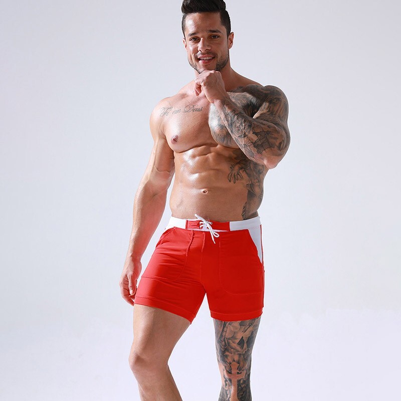• Плавки Deenyt подовжені червоного кольору з кишенями