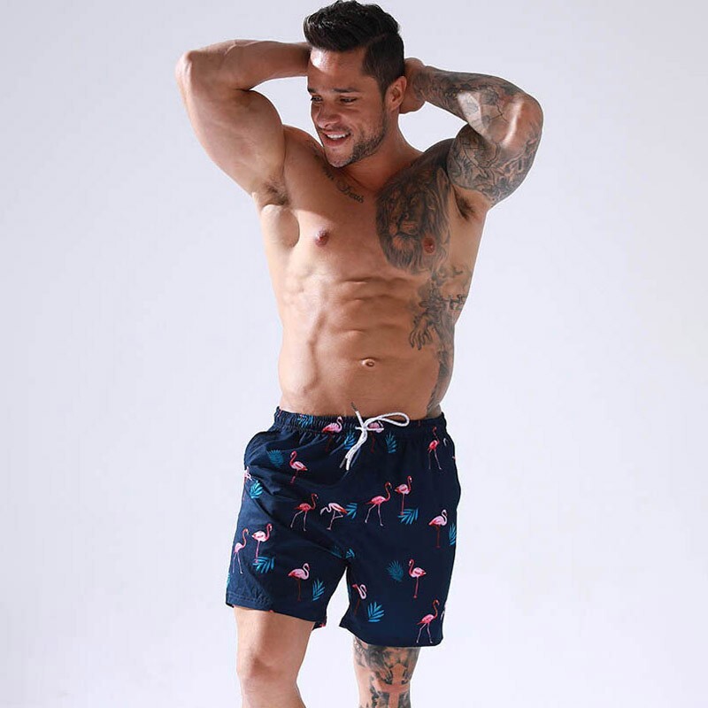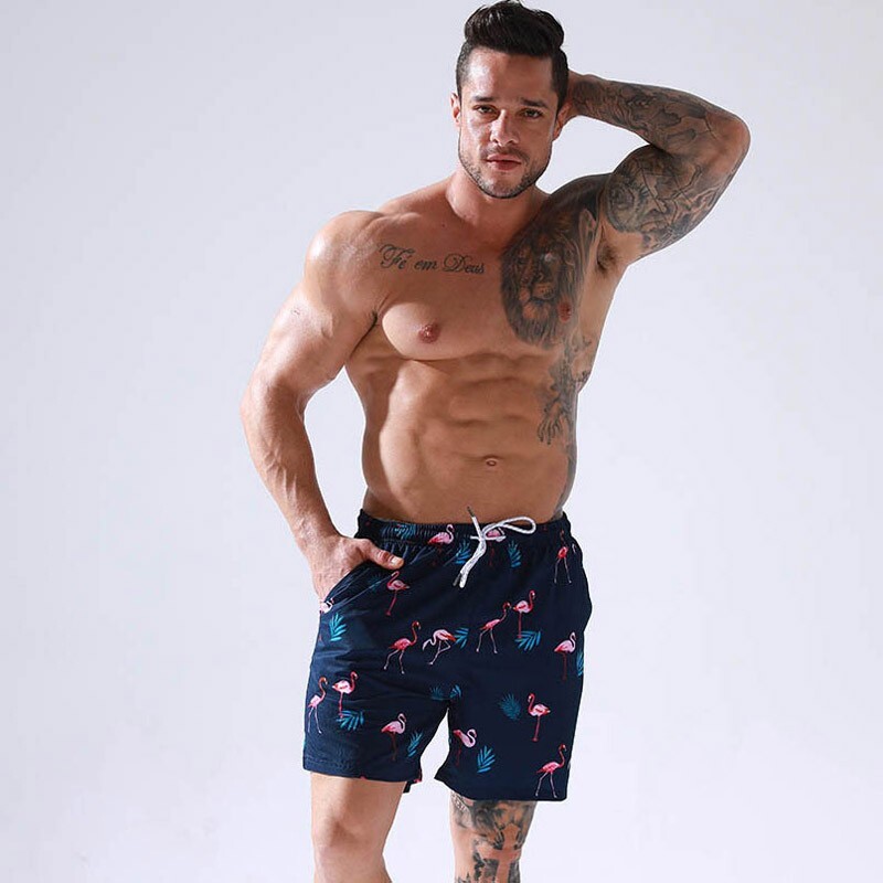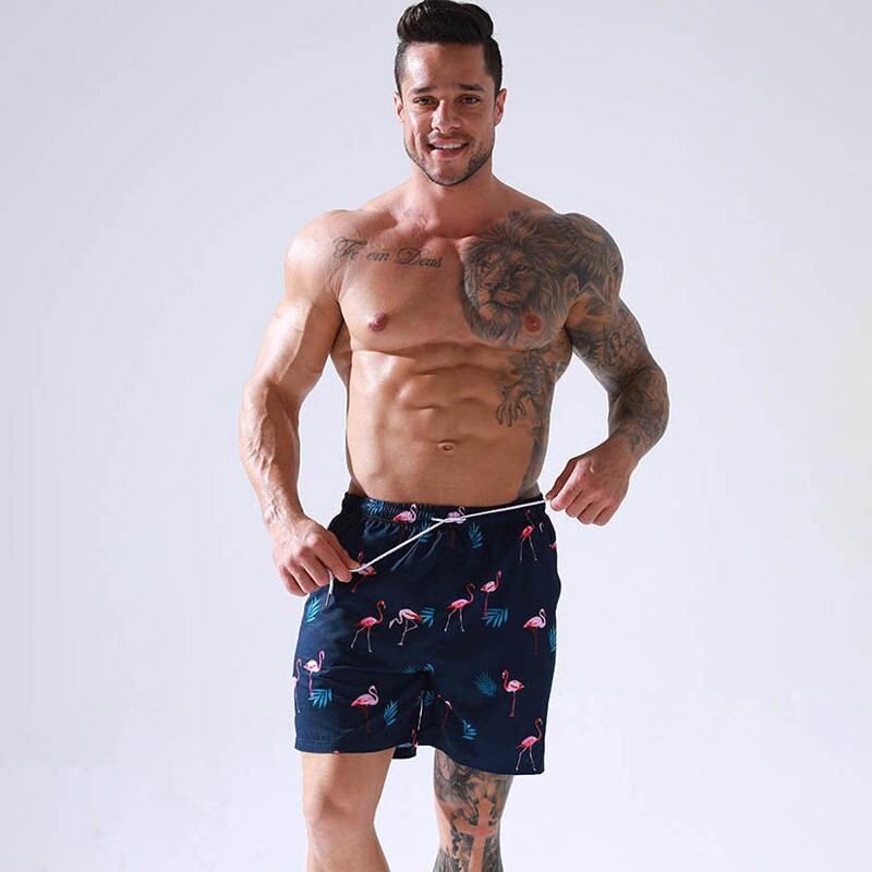 Фото - Пляжні шорти від Escatch темно-синього кольору з фламінго - Men box
