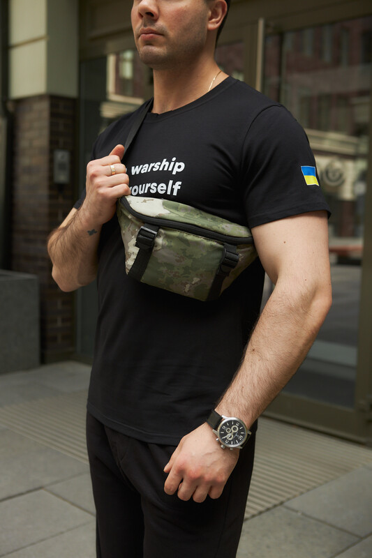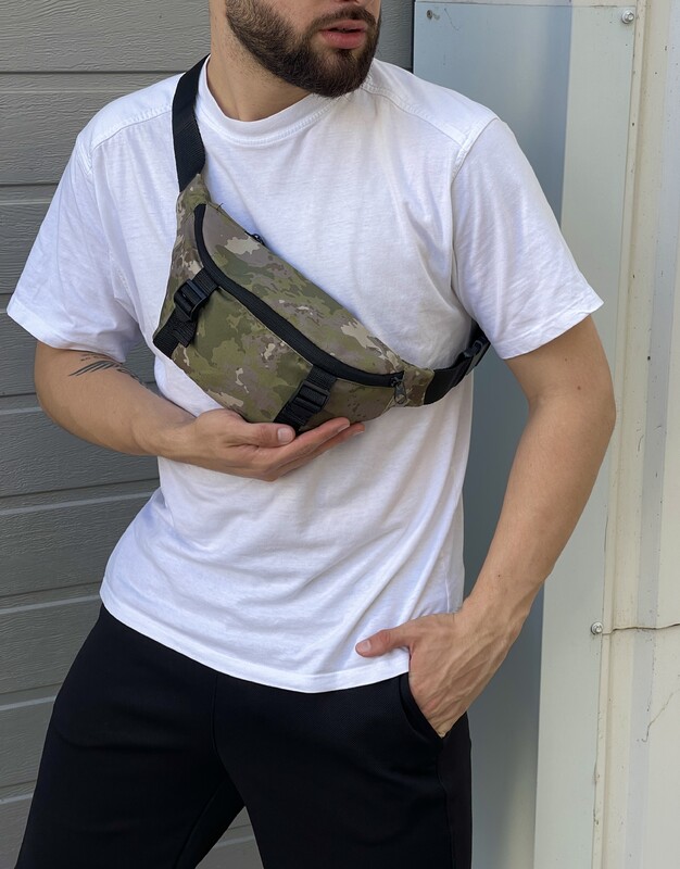 Фото - Камуфляжна поясна сумка з білим лого - Men box
