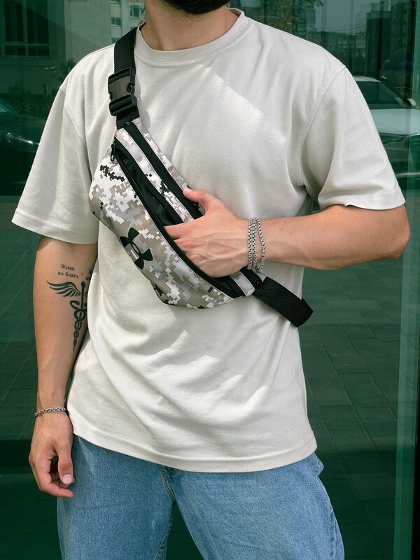 Фото - Камуфляжна поясна сумка з білим лого - Men box