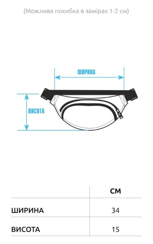 - ремінна стрічка з пластиковим фастексом, довжина ремінної стрічки регулюється (максимальна довжина – 112 см).