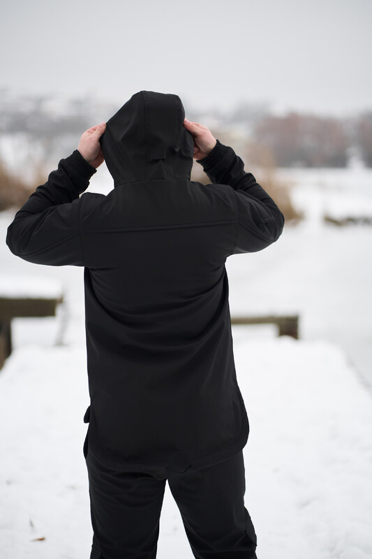 Для додаткового захисту від вітру куртка ззаду подовжена та горло куртки підвищено.