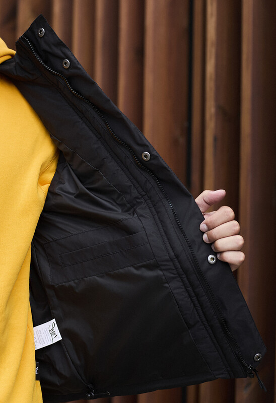 - тракторний замок-блискавка ззовні прикритий вітрозахисною планкою на кнопках;