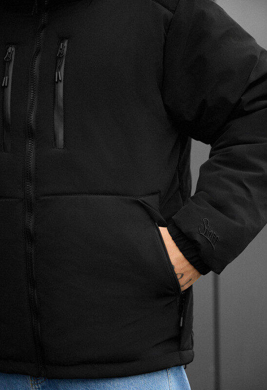 Отримайте не просто захист від негоди, а яскраве втілення функціонального стилю з цією чорною зимовою курткою. Її зовнішній матеріал (100% поліестер) оснащений вологовідштовхувальною мембраною, що гарантує сухість під дощем та снігом, а високоякісний утеплювач Hollowsoft забезпечує виняткове тепло протягом всієї холодної пори. Куртка класичного крою абсолютно не сковує рухів. Дизайн має високу горловину, що переходить у великий затишний капюшон, який легко регулюється для створення надійного кокона. Функціональність моделі підвищена завдяки чотирьом зовнішнім кишеням (дві нагрудні на водонепроникній блискавці та дві нижні, прикриті планкою) і двом внутрішнім на блискавці. Манжети на резинці та приховані стяжки по низу забезпечують ідеальне прилягання, а якісна вишивка логотипу на рукаві додає елегантності.