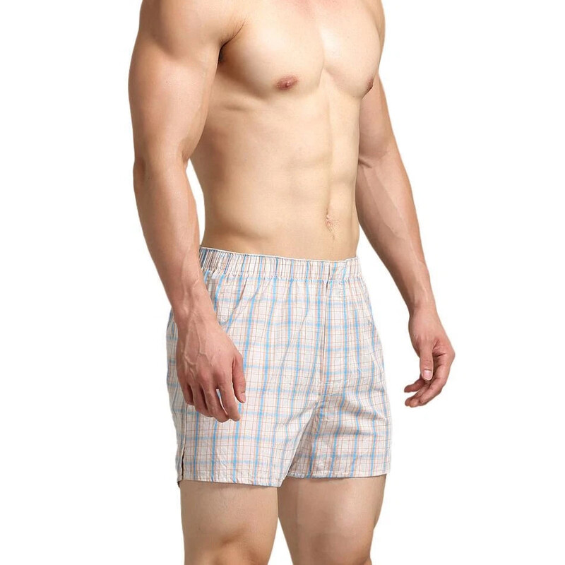 Чоловічі подовжені труси Seobean у світло-кремовому кольорі з синьо-помаранчевою клітинкою поєднують класичний стиль і щоденний комфорт. Виготовлені з 100% натуральної бавовни, вони приємні до тіла, не викликають подразнень та добре пропускають повітря.