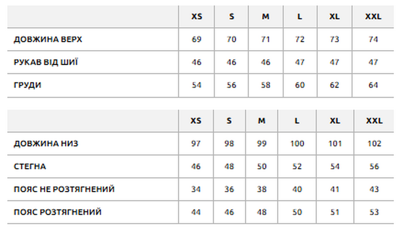 - знизу манжети з еластичною резинкою.