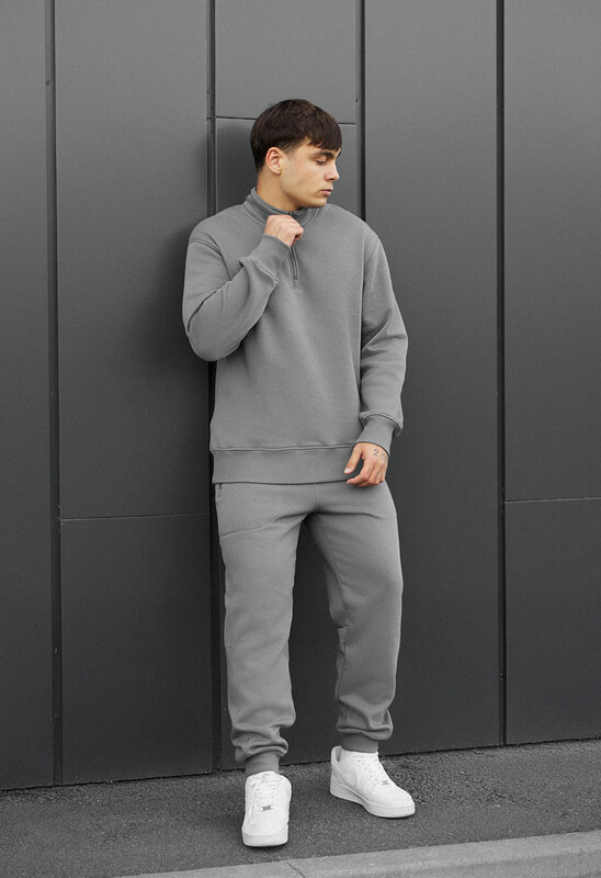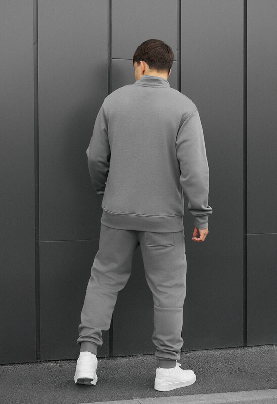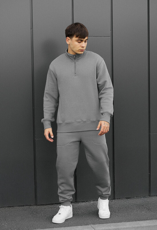 Сірий утеплений спортивний костюм — ідеальний вибір для прохолодних днів. Його м’який мікрофліс зберігає тепло, а щільна бавовна європейської якості забезпечує комфорт і довговічність. Олімпійка зі спущеними плечима та високою горловиною захищає від вітру, створюючи сучасний мінімалістичний силует. Штани з еластичним поясом і зручними кишенями на тракторних блискавках доповнюють образ практичністю. Сірий відтінок додає стриманості й універсальності, роблячи костюм доречним для будь-якого випадку в сезоні осінь/зима.