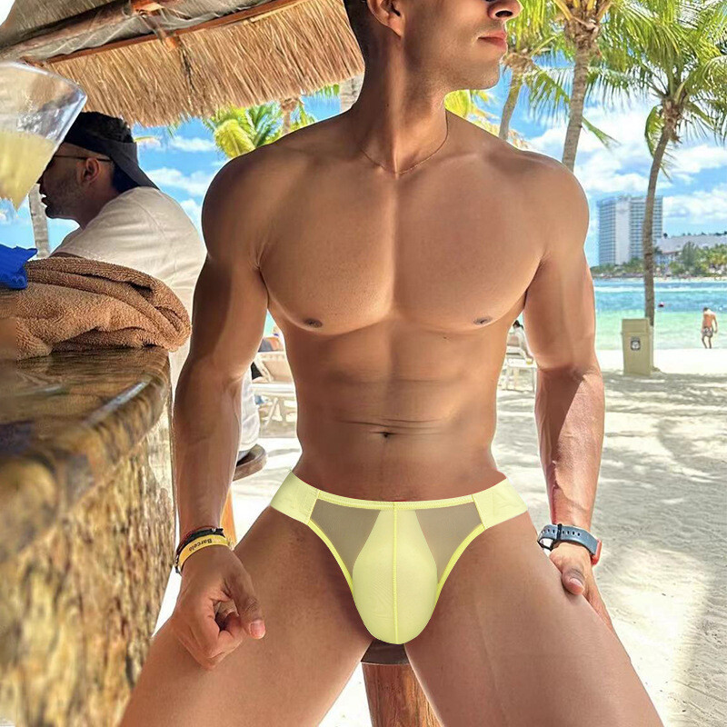 • Прозорі еротичні чоловічі труси танга Adannu жовтого кольору