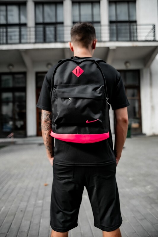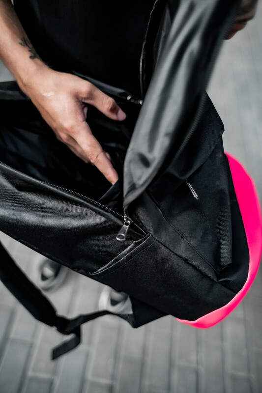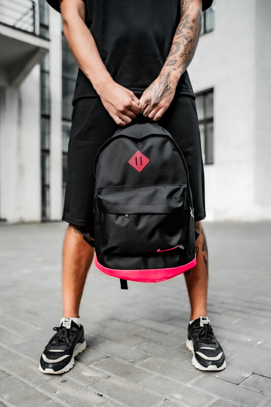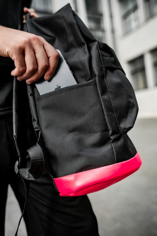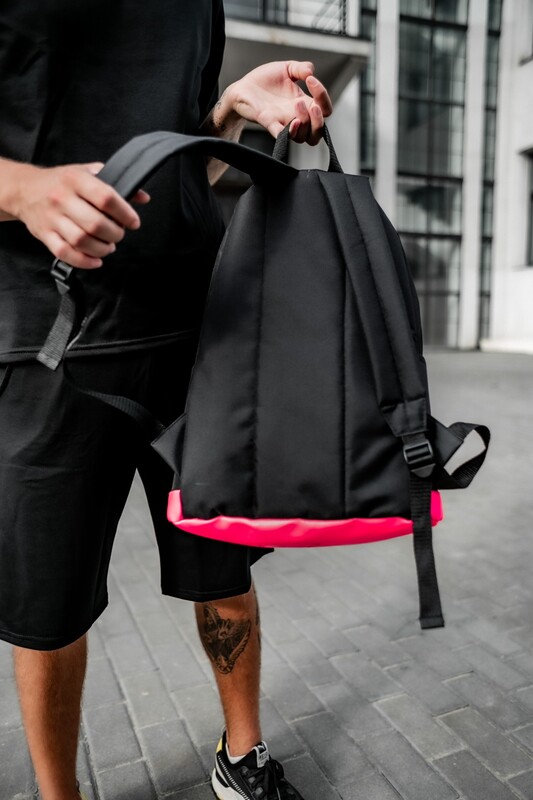 • Рюкзак унісекс чорний з рожевим дном з екошкіри