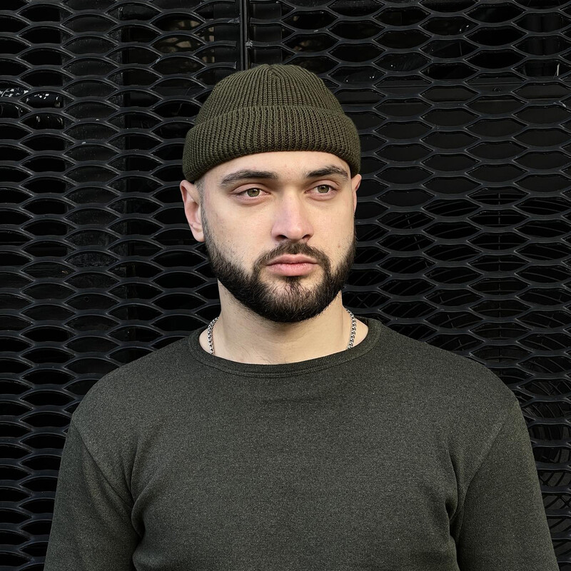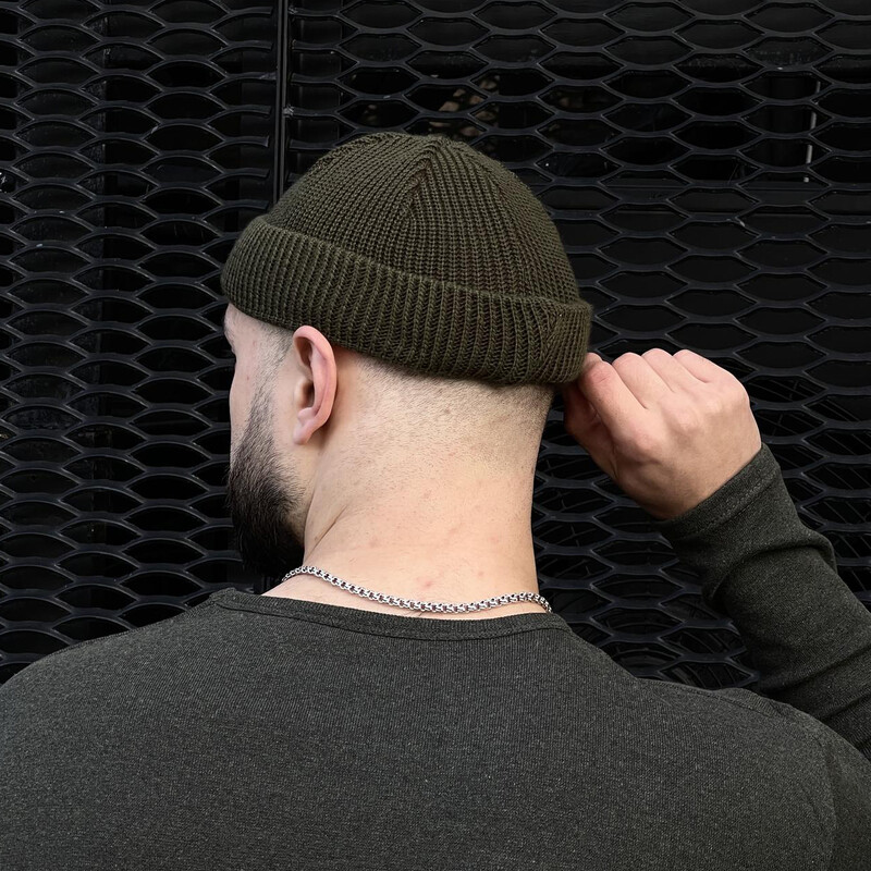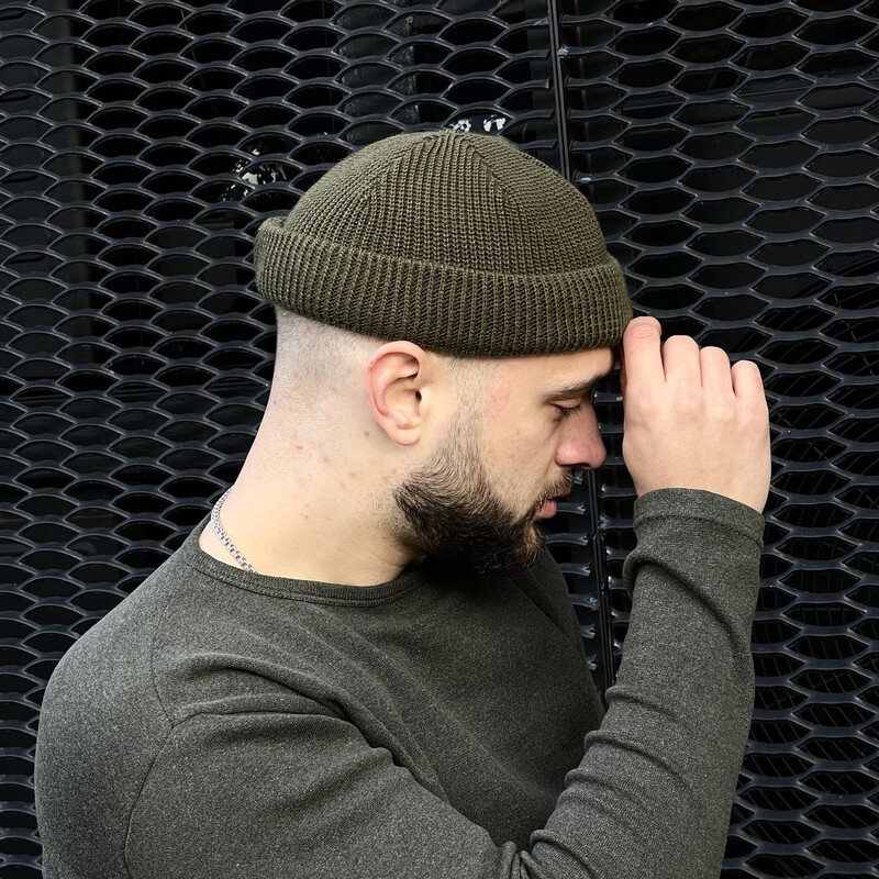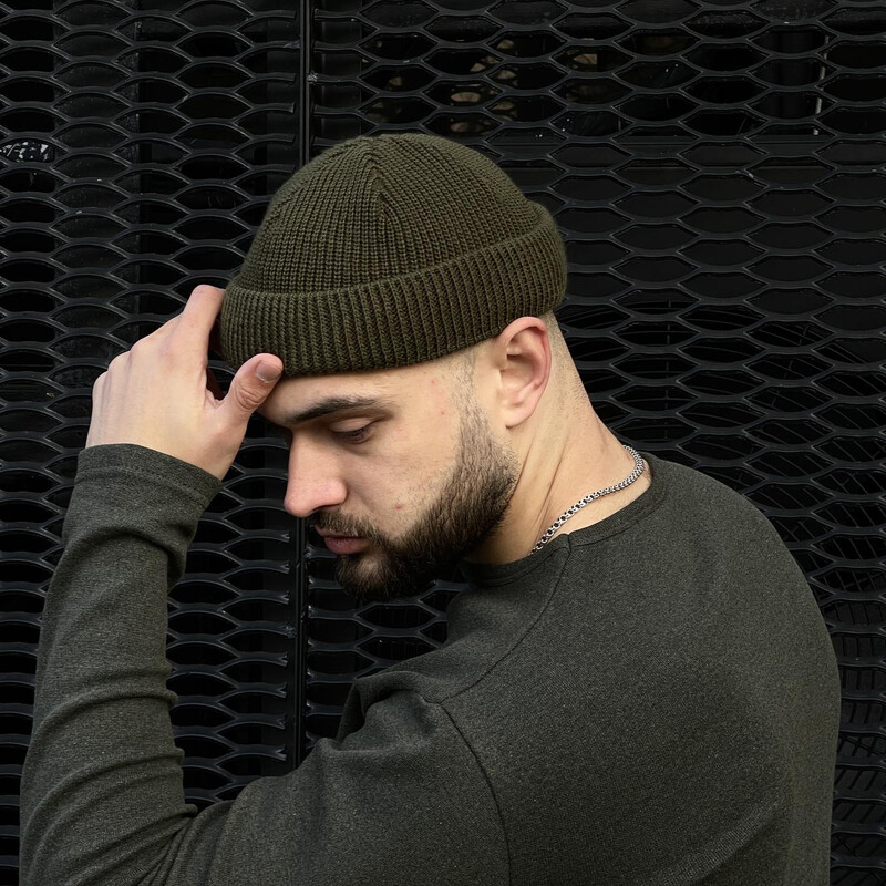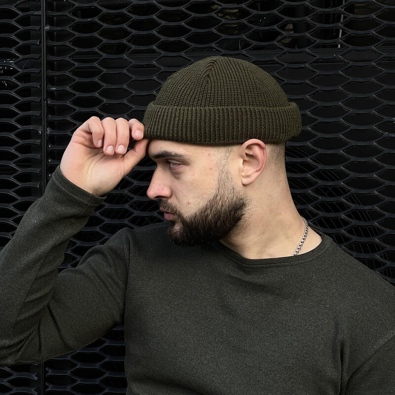 • Шапка унісекс коротка від бренду Intruder кольору хакі