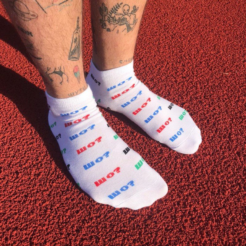 • Шкарпетки від Sunny Focks білого кольору з написом "ШО?"