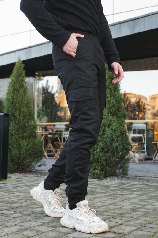 Фото - Штани-карго на флісі Intruder чорного кольору з кишенями - Men box