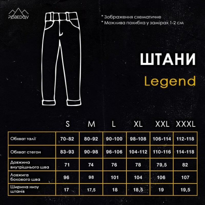 При першому пранні можлива усадка тканини в довжину до 3 см, тому ми зробили підгин низу штанини, який можна обробити для додаткової довжини.