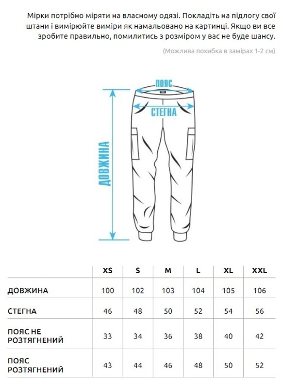 Штани чудово тримають форму та не мнуться. Регульований пояс і низ дозволяють підігнати виріб по фігурі, а зручні кишені на блискавці та застібках-липучках збережуть твої речі у безпеці.