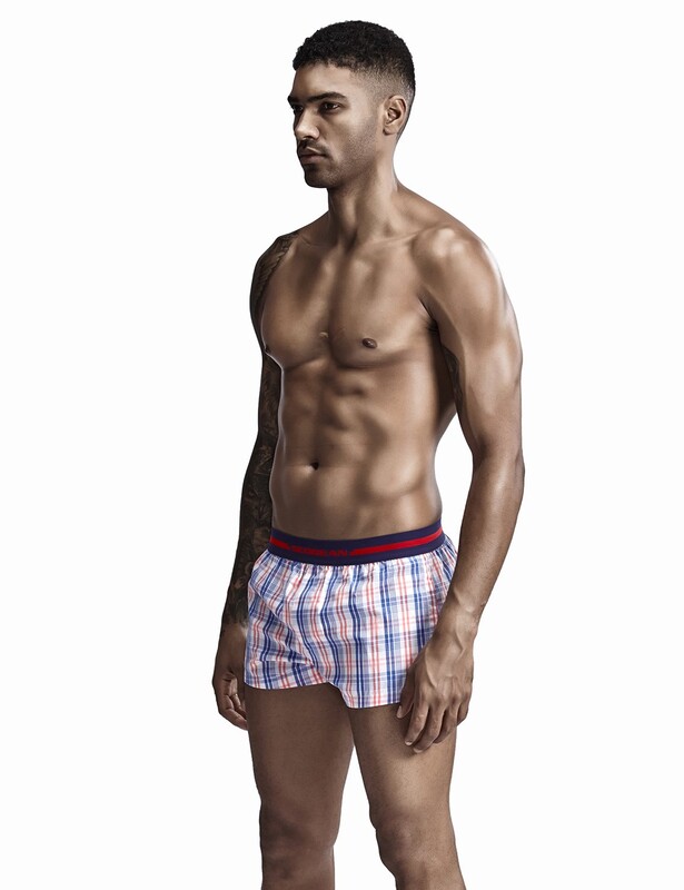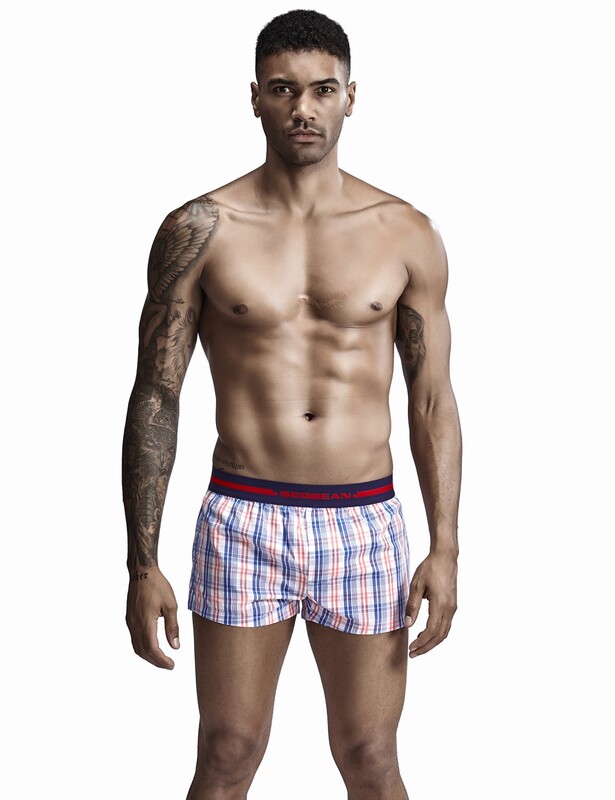 • Чоловічі сімейні труси бавовна Seobean білі в червоно-синю клітку