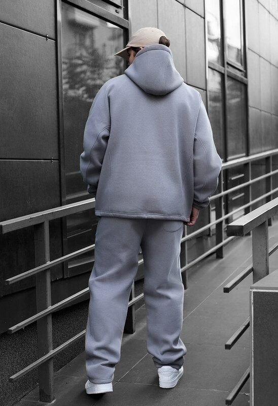 Утеплений спортивний костюм в посадці oversize в який входять об’ємне худі з регульованим низом та штани прямого вільного крою з кишенями на блискавках. Модель надійно зігріває у холодну пору да створює стильний образ.