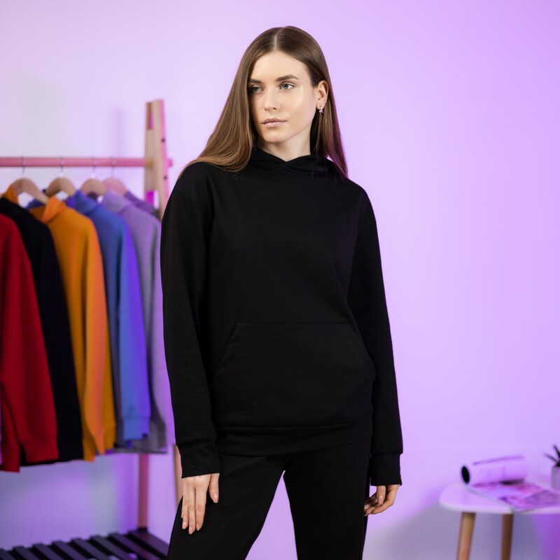 Матеріал: якісна турецька двунитка, не линяє та не кашлатиться. Через високий вміст бавовни тканина не парить. Об'ємний, подвійний вшитий капюшон (з внутрішньої сторони закритий такою ж тканиною, що і верх худі). Кишеня в стилі "кенгуру"