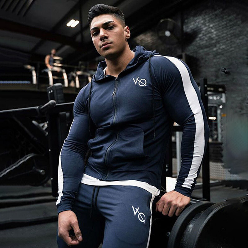 Виготовлений з еластичної тканини універсальний чоловічий спортивний костюм ідеально підходить для спорту та відпочинку, забезпечуючи комфорт та свободу рухів.