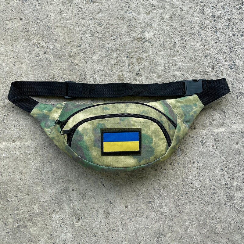 Камуфляжна поясна сумка з білим лого