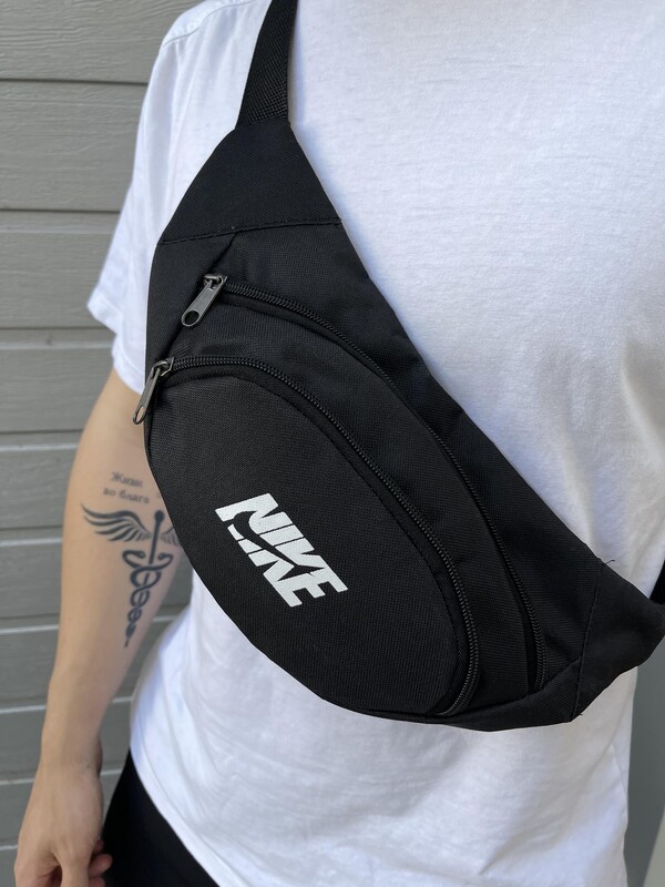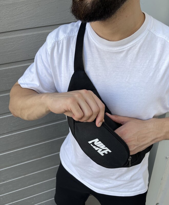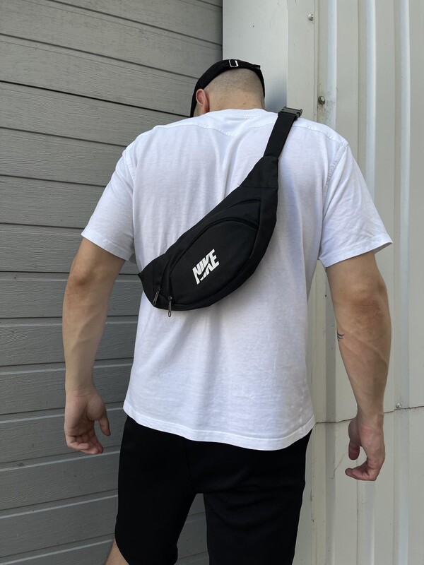 Фото - Сумка-бананка чорного кольору з білим логотипом - Men box