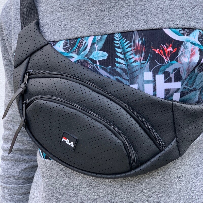 • Сумка поясна з перфорованого шкірозамінника чорна