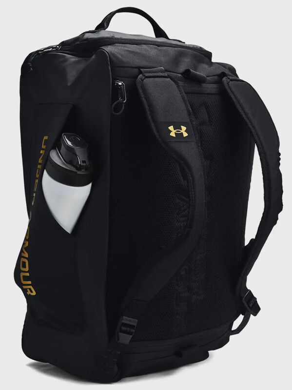 Чорна сумка UA Contain Duo SM BP Duffle – це універсальний аксесуар, який можна носити як рюкзак або сумку, залежно від ситуації. Водовідштовхувальна технологія UA Storm збереже ваші речі сухими, а система ременів LEVELED™ забезпечить рівномірний розподіл ваги. Велике основне відділення з внутрішньою організацією ідеально підходить для ноутбука та цінних речей. М'який чохол для ноутбука вміщує до 15-дюймового MacBook Pro®. Внутрішня кишеня для білизни або взуття розташована внизу, а кишеня для пляшки з водою та дві зовнішні кишені додають зручності. Точка кріплення D-кільця дозволяє закріпити додаткові аксесуари. Ця сумка – ваш надійний супутник у будь-яких пригодах.