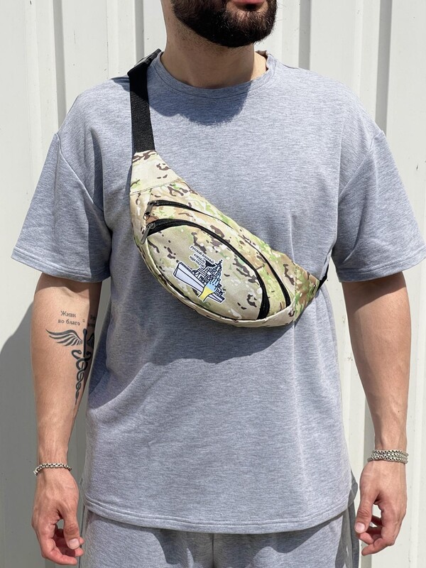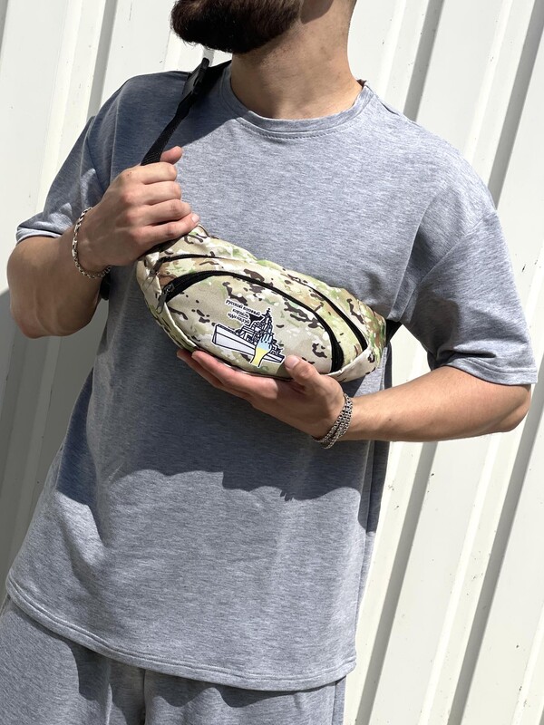 Фото - Камуфляжна поясна сумка з білим лого - Men box