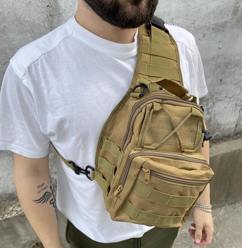 Фото - Сумка слінг у стилі мілітарі від Intruder кольору хакі - Men box