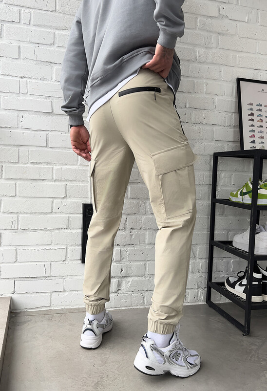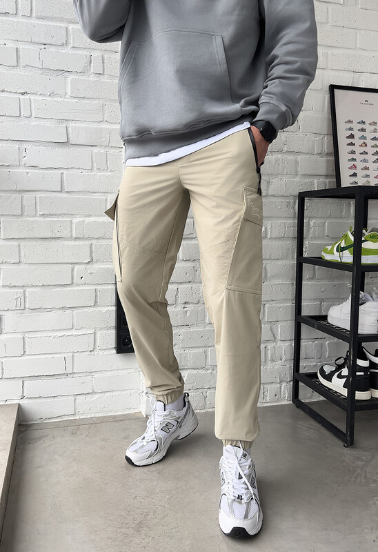 Штани карго з бічними кишенями на магнітах, що забезпечують швидкий доступ до особистих дрібниць та еластичними манжетами унизу для надійного прилягання та додаткового захисту від протягів.