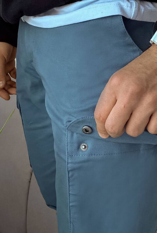 - шість кишень: дві прорізні спереду, дві накладні відкриті ззаду та дві накладні на кнопках з боків;