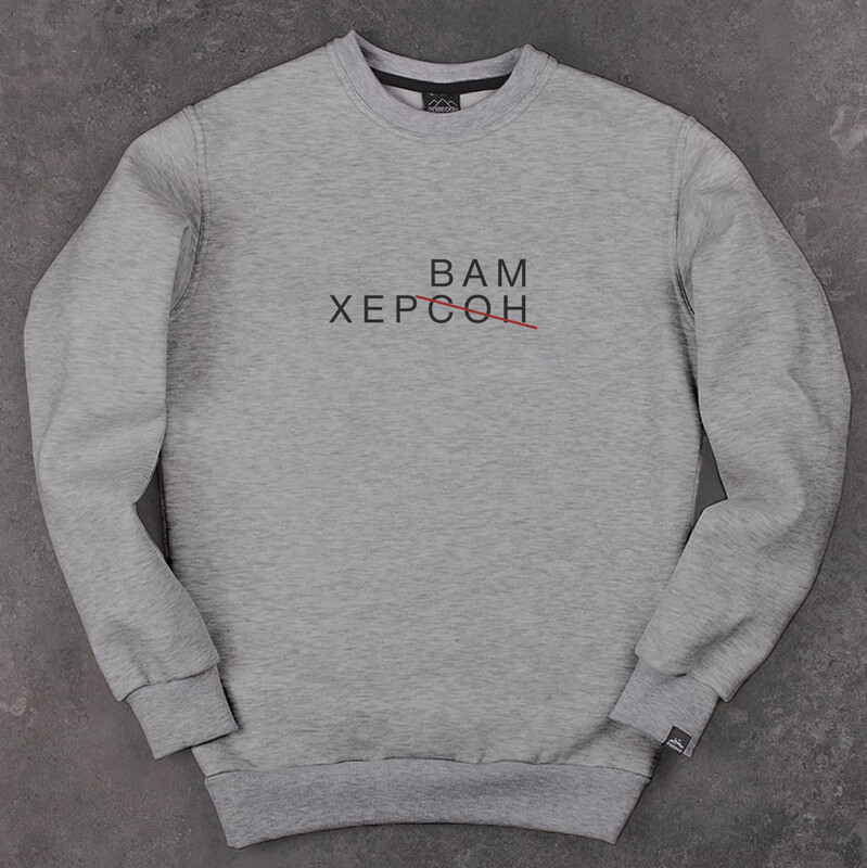 • Світшот на флісі Pobedov "Хер вам" кольору сірий меланж