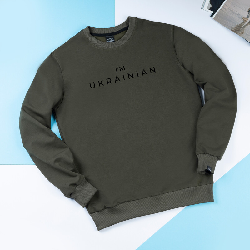 • Світшот Pobedov I'M UKRAINIAN кольору хакі без начісу