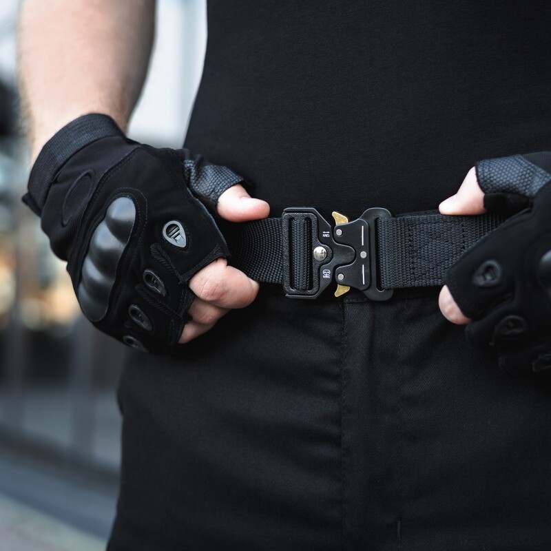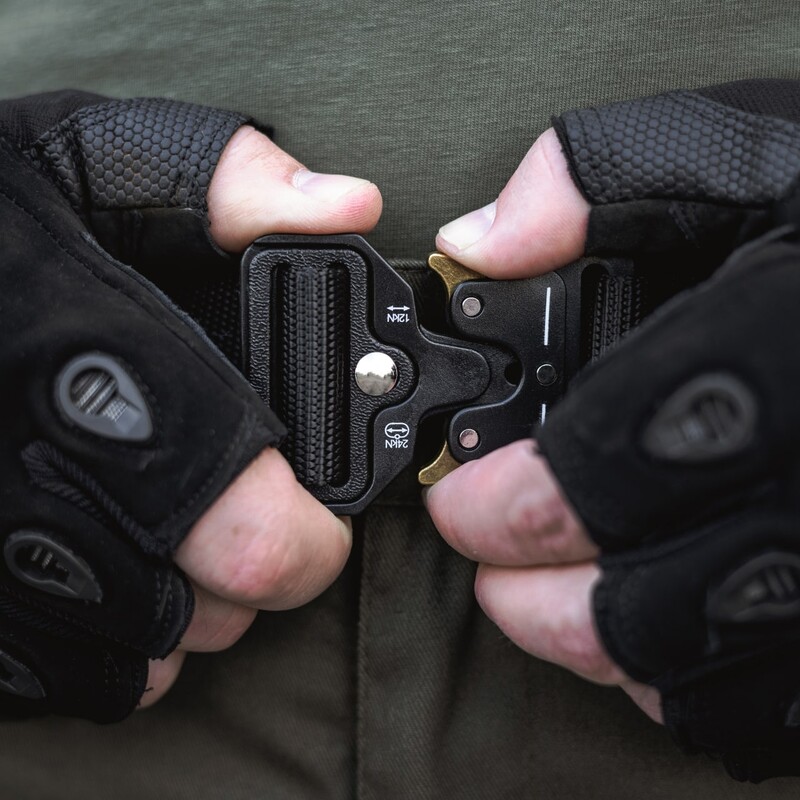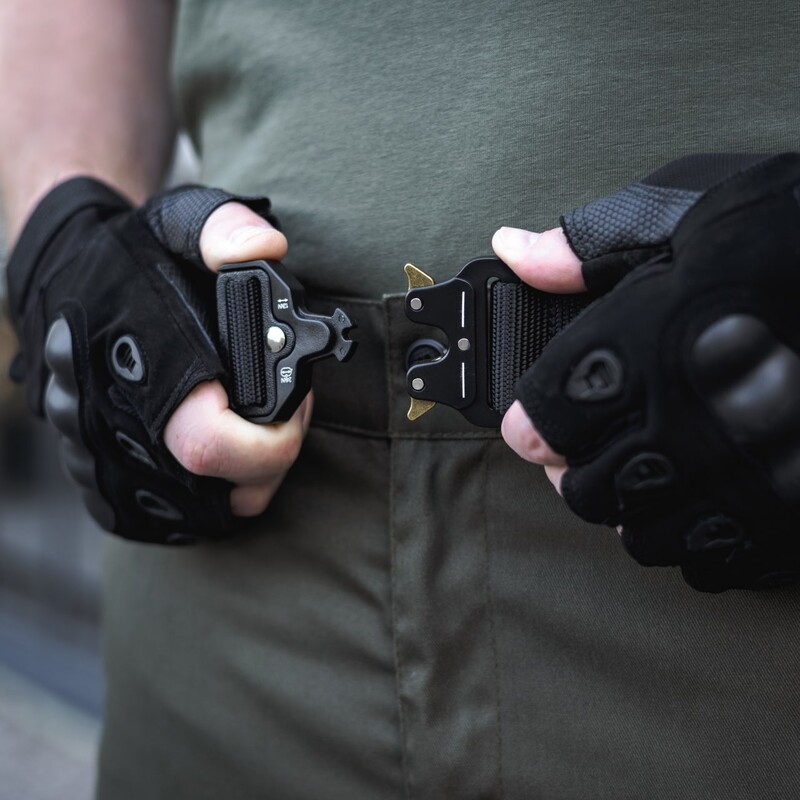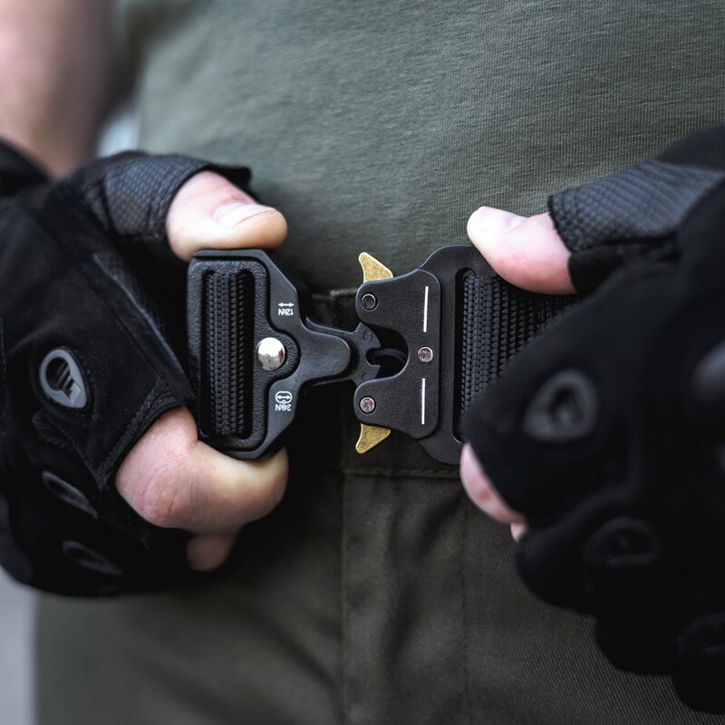 Міцний і надійний ремінь. Відкривається одним рухом. Добре фіксується, не потребує укорочення, легко регулюється під будь-яку талію. Металева пряжка.