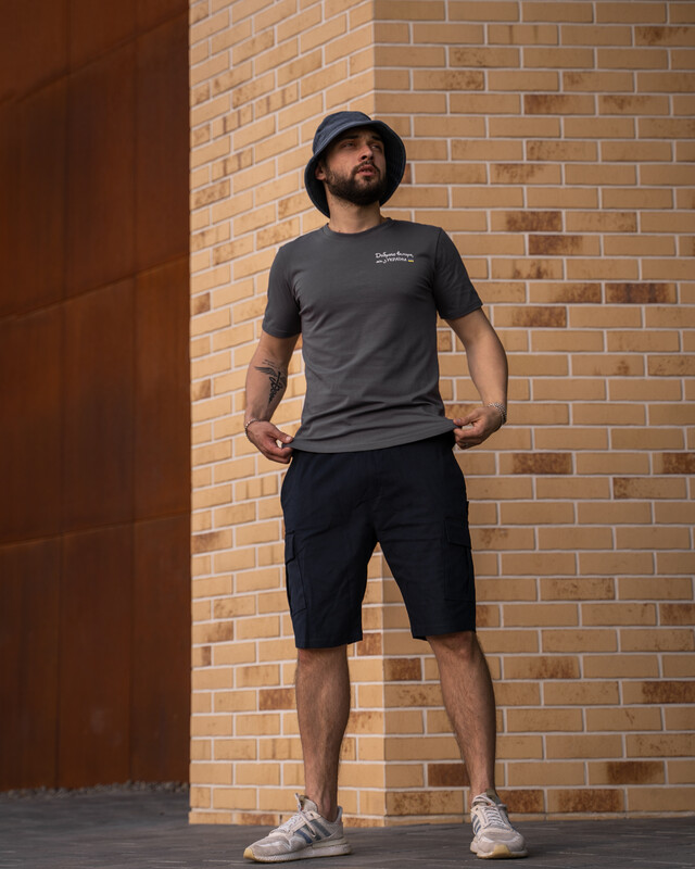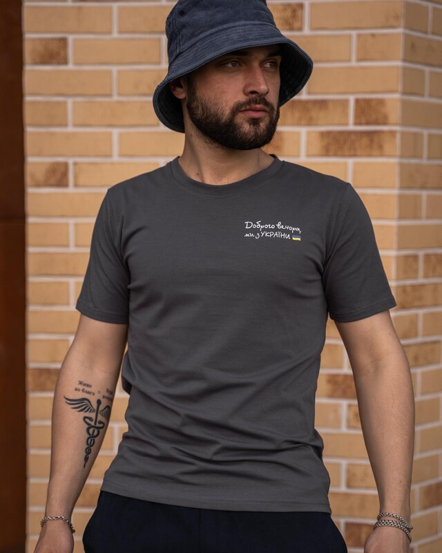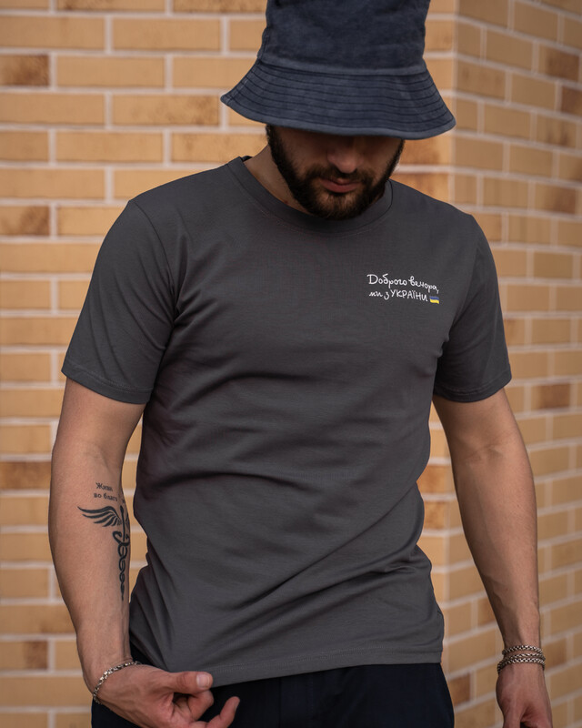 Представляємо патріотичну чоловічу футболку від українського бренду Intruder, виконану у стильному темно-сірому кольорі. Ця футболка — більше, ніж просто одяг, це спосіб висловити свою національну гордість та громадянську позицію за допомогою популярного слогана "Доброго Вечора ми з України". Модель виготовлена з високоякісного турецького куліру, що складається з 90% бавовни та 10% еластану, що забезпечує їй м'якість, еластичність та відмінну повітропроникність. Завдяки прямому крою, вона ідеально сидить по фігурі, не сковуючи рухів, а класичний круглий виріз горловини робить її універсальною для будь-якого стилю.