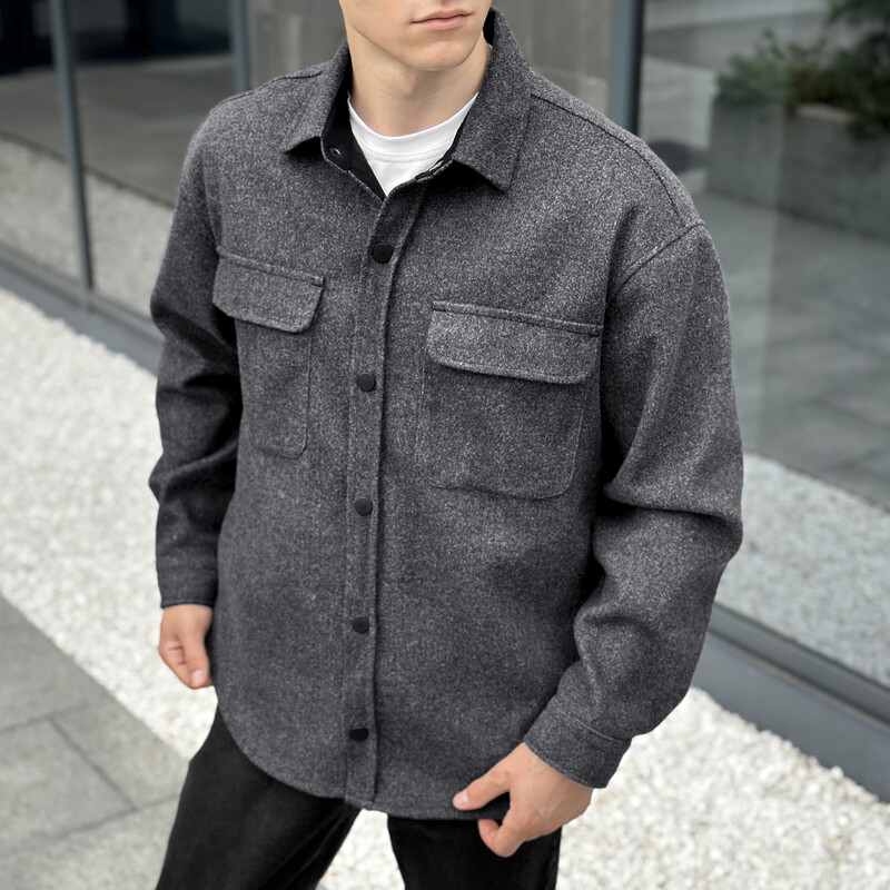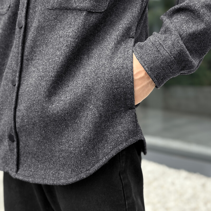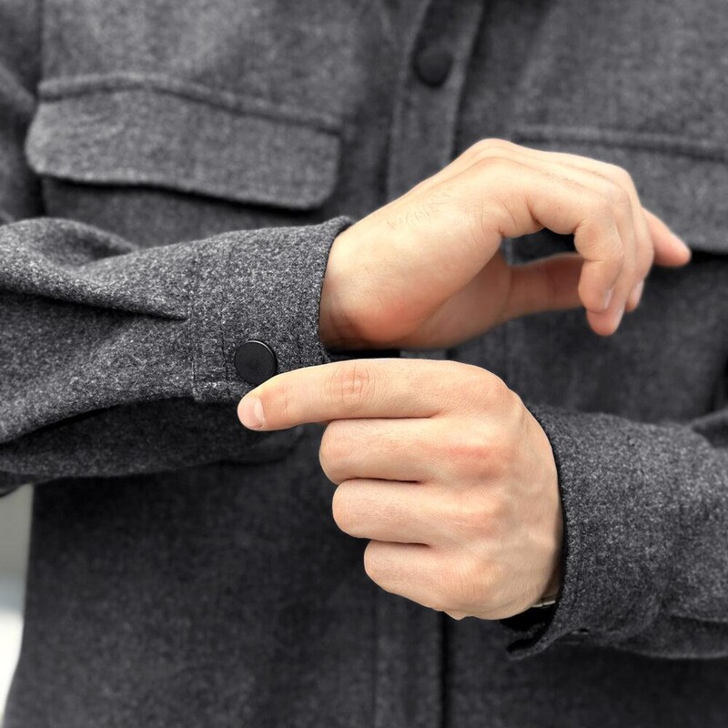 Сорочка-пальто виготовлена з пальтової тканини високої якості, яка містить у своєму складі сатинові волокна, що робить річ міцною, приємною на дотик і зручною в носінні.