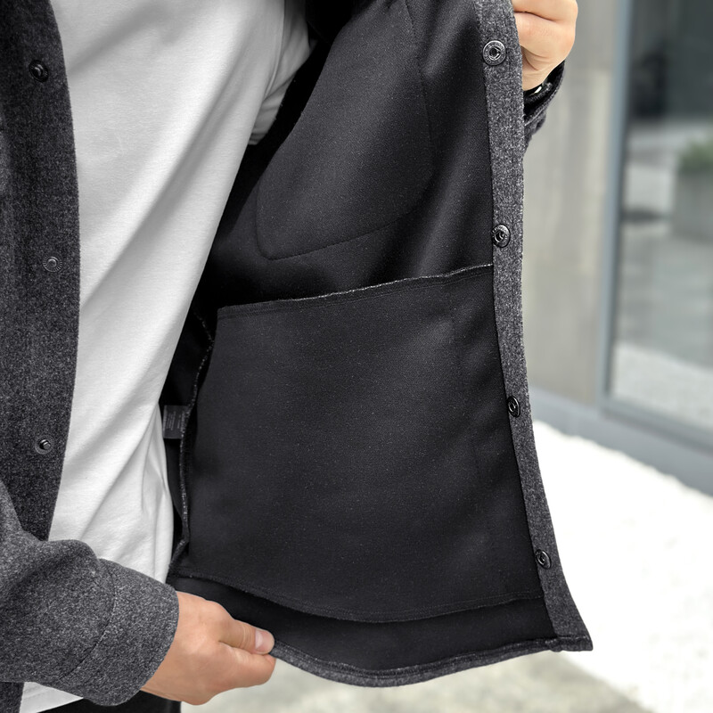 • Темно-сіре пальто-сорочка від Pobedov Mars