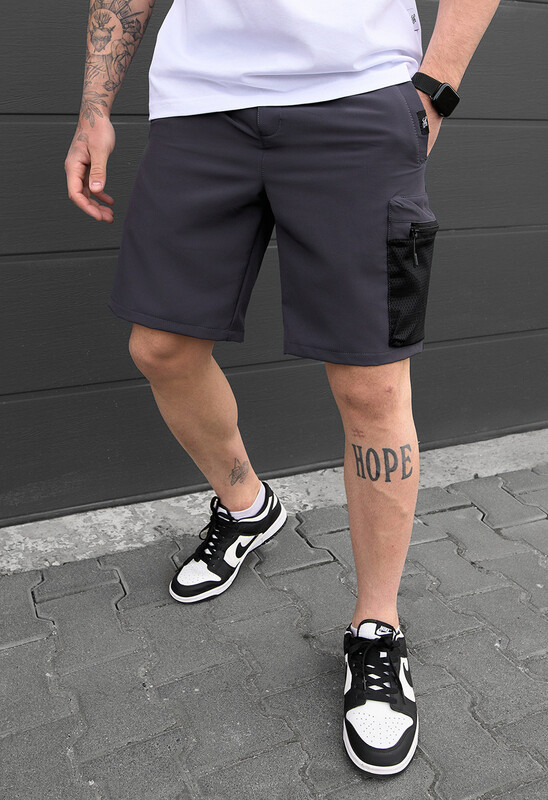Шорти карго з поясом на фастексі чудово тримають форму та посадку, а сітчаста кишеня на блискавці з лівої сторони робить дану модель ексклюзивною та неповторною.