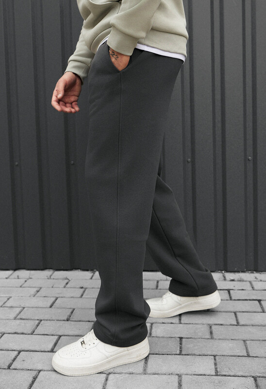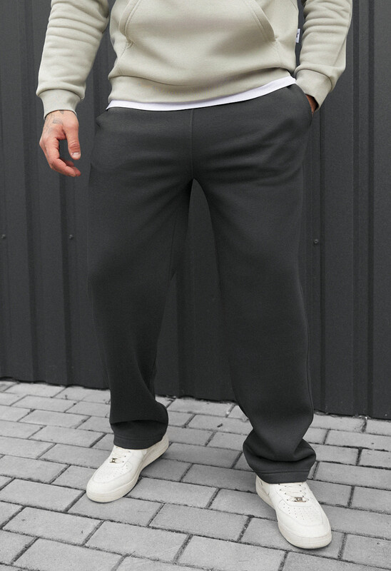 Максимальний комфорт і бездоганний вигляд для холодної пори! Ці утеплені спортивні штани вільного крою у практичному темно-сірому кольорі ідеально підходять для осінньо-зимового сезону, оскільки виготовлені з якісної європейської 100% бавовни та утеплені мікрофлісом преміумкласу. Головна перевага моделі — вона не мнеться і завжди зберігає презентабельний вигляд. Надійну та зручну фіксацію по фігурі забезпечує еластичний пояс у рубчик на шнурку. Практичність доповнюють два прорізні кишені спереду та один накладний відкритий карман ззаду.