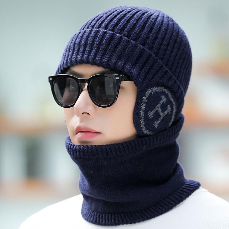 Фото - Тепла чоловіча шапка Narason темно-синього кольору - Men box