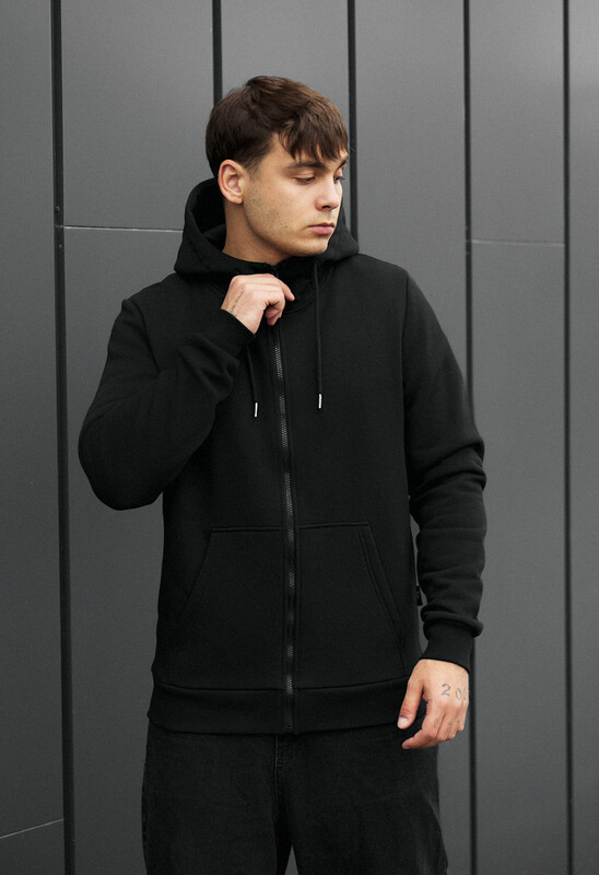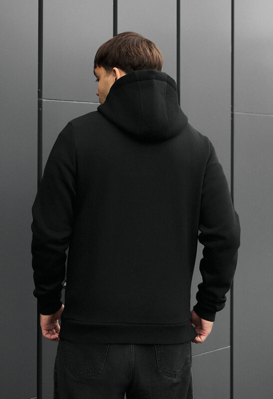 Це зручне базове худі на блискавці у класичному чорному кольорі — справжній фундамент вашого гардероба, який легко інтегрується в будь-які образи та ситуації, від активного відпочинку до повсякденних прогулянок. Тепло і затишок у осінньо-зимовий сезон забезпечує преміальне утеплення: 100% європейська бавовна, доповнена мікрофлісом вищого ґатунку. Модель має класичний крій, високу горловину для додаткового захисту від холоду та надійну тракторну фурнітуру; функціональність підвищують два накладних відкритих кишені та капюшон, який регулюється шнуром. Фірмову якість підтверджує бирка з логотипом, вшита в бічний шов.